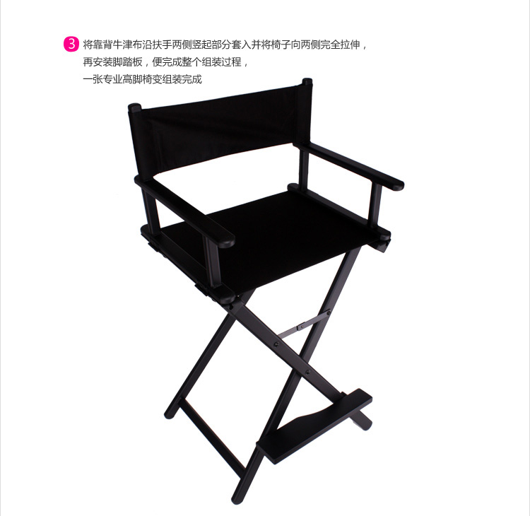 sunrise黑色合金導演椅 高腳摺疊化妝椅 戶外帆布化妝椅